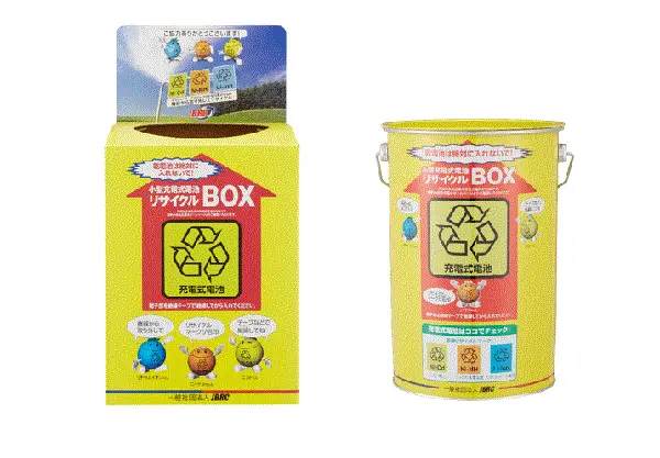 「小型充電式電池リサイクルBOX(黄色いボックス)」に入れる